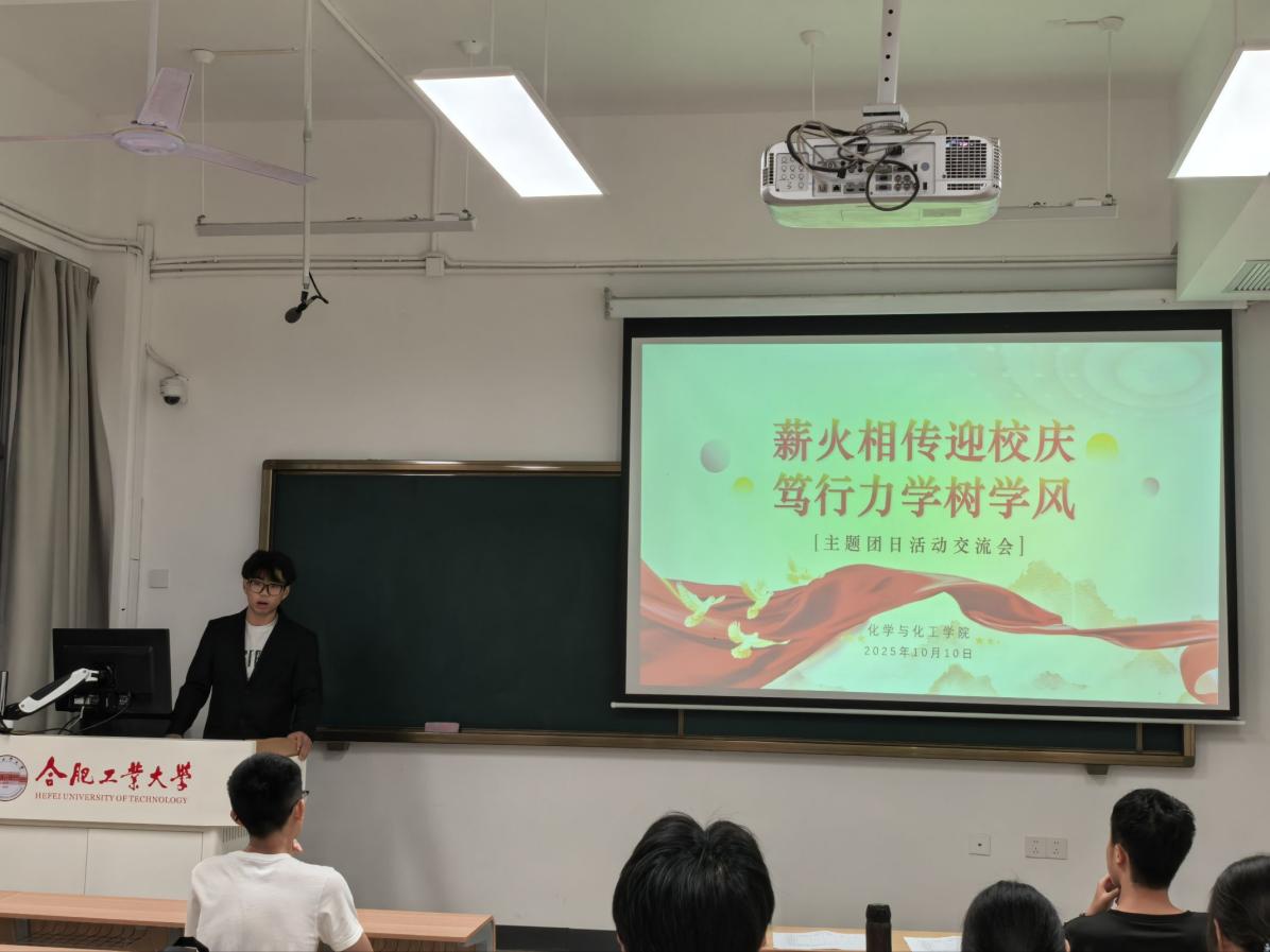 由化学与化工学院举办的“薪火相传迎校庆,笃行力学树学风”主题团日活动交流会于10月10日晚19点在翡翠湖校区翠六教105举行,化学与化工学院相关负责人,2024级各班团支书参与此次活动。