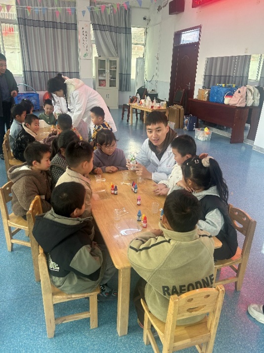 为推动党建与科普教育深度融合,2025年11月14日,实验教学中心教工党支部联合学生党支部走进砂坝村幼儿园,开展“大手拉小手 化学润童心”科普活动,以趣味化学实验为孩子们开启科学探索之门。