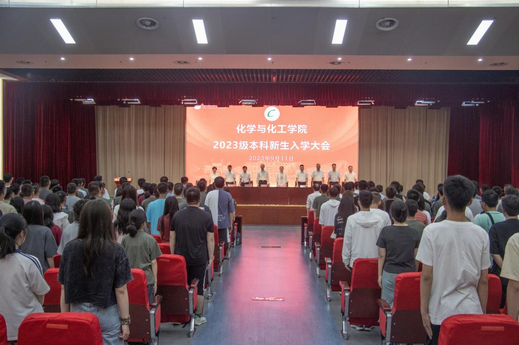On the evening of September 11th, the enrollment ceremony and class advisor appointment ceremony for the 2023 undergraduate freshmen of the School of Chemistry and Chemical Engineering were successfully held at the Feicui Hu Campus Science and Education Building lecture hall. The Secretary of the School Party Committee, Qin Guanglong, the Executive Vice Dean, Cong Huaiping, the Vice Dean, Zhang Dawei, as well as relevant department heads (branch secretaries), class advisors, counselors, and all