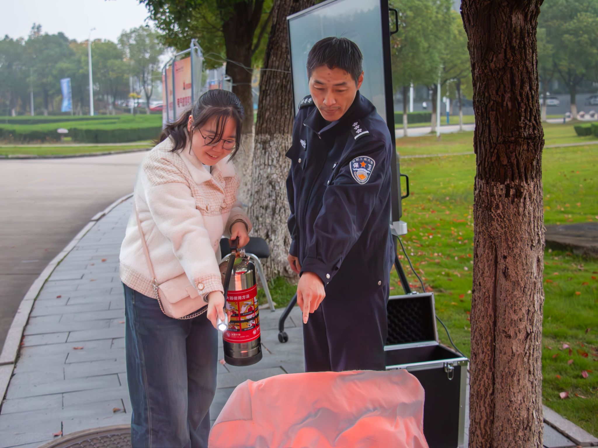 为组织好此次活动,党委学生工作部、党委保卫部、总务部等相关部门提前谋划、联动配合,精心制定活动方案。现场活动围绕消防安全教育核心内容,共设置警示教育区、实操体验区、知识普及区和违规电器展示区四大展示区域。警示教育区设置主题宣传展板,系统展示消防法律法规、高校典型火灾案例与安全用火用电要点,以案例重现和图文结合的方式增强学生的火灾风险认知与防范意识;实操体验区,保卫部老师现场授课,深入讲解灭火器工作原理与灭火流程,参与学生手握灭火设备,亲身体验,增强学习效果;知识普及区通过设置消防知识竞答、消防主题飞行棋等互动环节,巧妙地将实用知识融入趣味体验,学生踊跃参与;违规电器展示区集中展示了宿舍常见违规电器及其他具有安全风险隐患的用电物品,总务部老师现场讲解,引导学生强化规范用电意识,从源头上防范安全风险。同学们在各区域认真观摩、积极互动,在实操中严谨练习,掌握要领,纷纷表示:通过此次活动,不仅系统了解消防知识,更实际操练了消防技能,切实增强了消防安全意识。