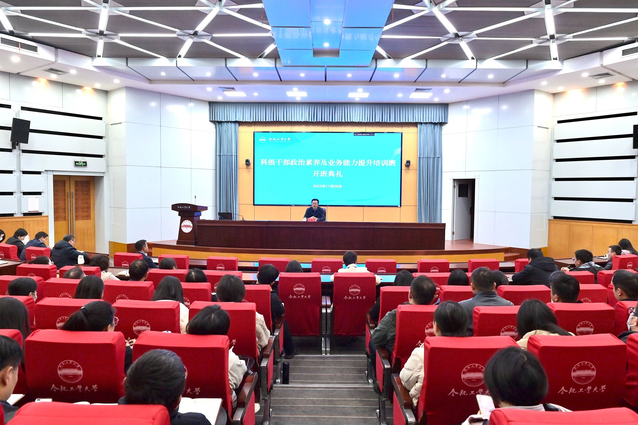 11月28日下午,学校2025年科级干部政治素养及业务能力提升培训班开班典礼在屯溪路校区、翡翠湖校区、宣城校区同步举行。校党委书记于祥成出席开班式并讲话。