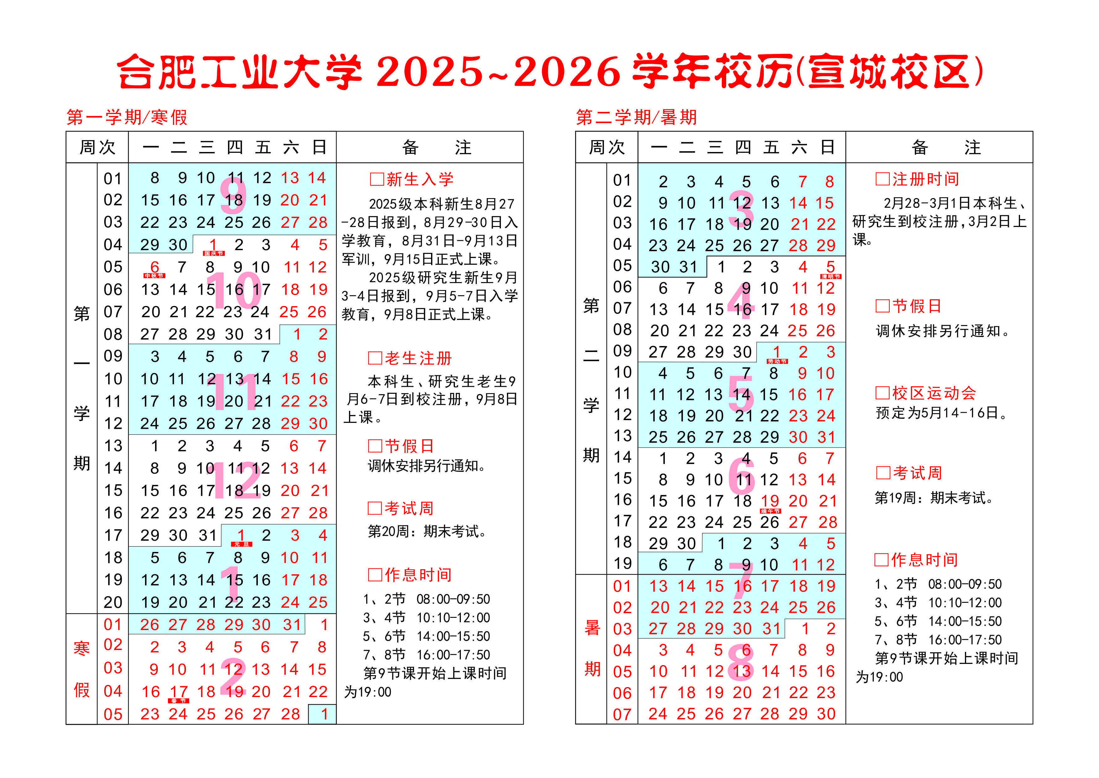 宣城校区校历