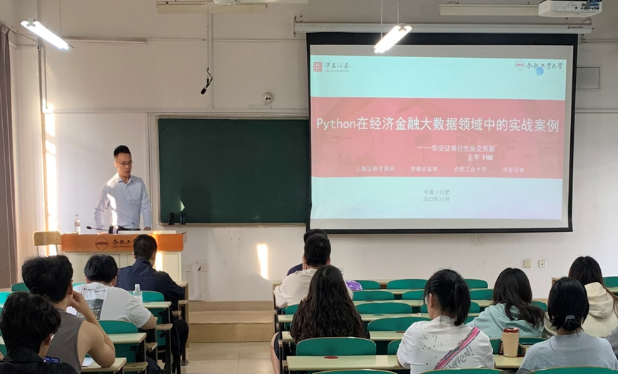 华安证券衍生品交易部王芊研究员在《Python程序设计》课程授课中,从Python在经济金融大数据领域中的实际应用场景出发,解读演示了Python在奇异期权定价、量化选股、期权投资交易策略回测方面的实战案例,多角度阐述了Python在经济金融大数据分析中简单易学、速度快、可移植性、可解释性、可拓展性、可嵌入性以及在处理金融行业和财务数据分析中的优势。