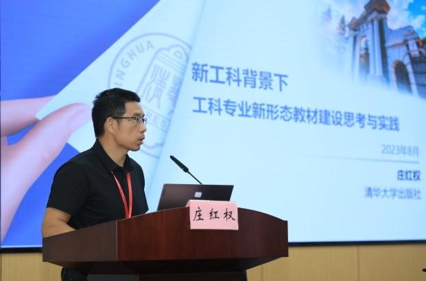 庄红权在致辞中感谢我校对会议的大力支持,并介绍了清华大学出版社智能建造系列教材出版和资源建设情况。他表示,出版社将大力推进数字出版和融合发展,促进我国智能建造新工科发展。