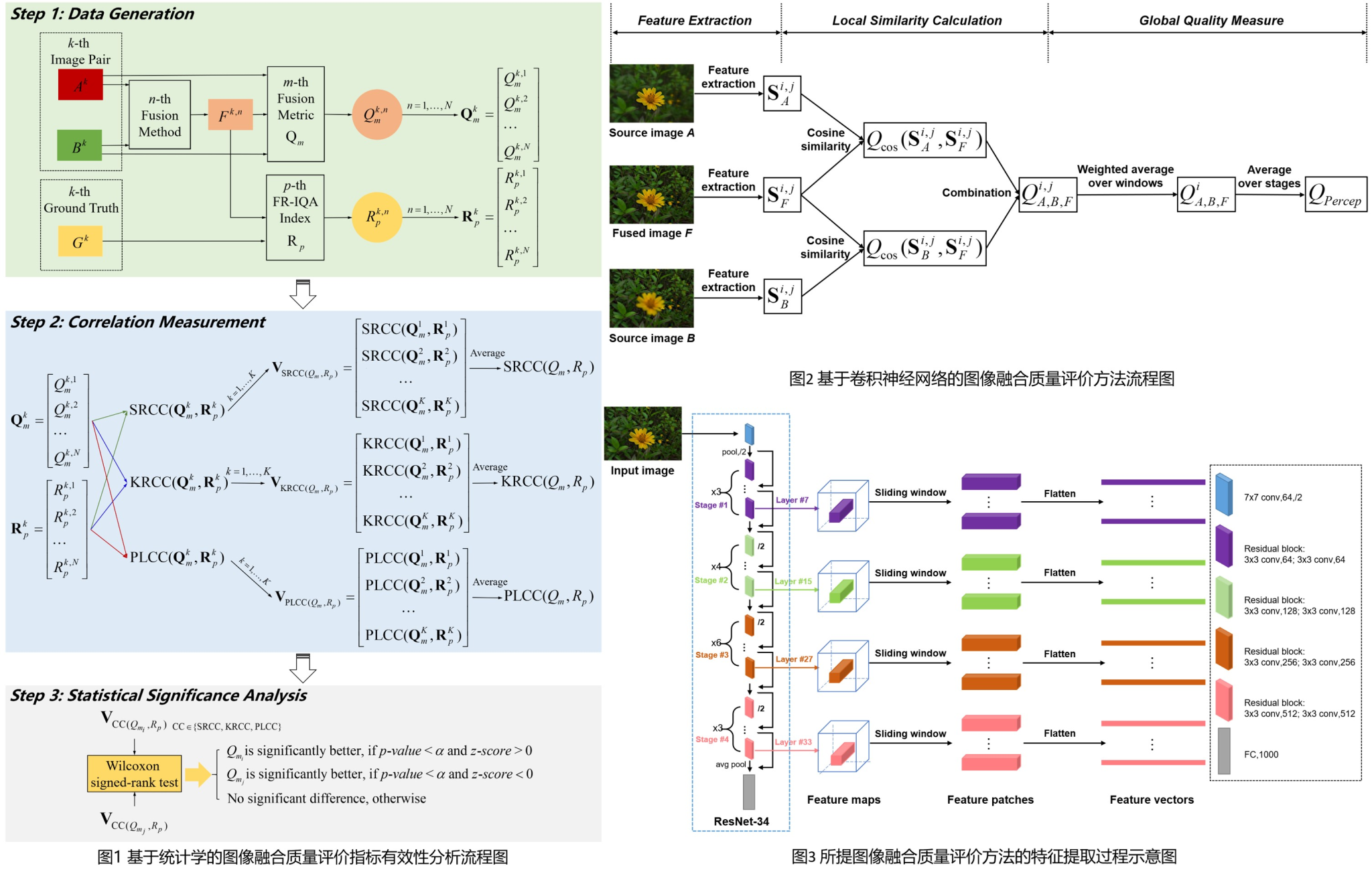 图像融合技术能够有效综合同一场景下多幅图像包含的互补信息,被广泛应用于生物医学、安防、遥感等领域。图像融合客观质量评价对于融合方法研究具有重要的指导意义。然而,当前图像融合研究缺乏客观评价指标选取的统一标准,不同研究工作使用的评价指标可能存在较大差异,造成融合方法性能评估困难。针对上述问题,我校刘羽副教授课题组提出了一种基于统计学的方法对多聚焦图像融合常用客观评价指标的有效性进行对比分析,其核心思路是使用Spearman等级相关系数(SRCC)等统计学中常用的相关性度量计算融合指标表现与有参考图像质量评价模型表现之间的一致性。同时,课题组提出了一种基于卷积神经网络的图像融合质量评价指标,利用网络不同层次特征实现更全面的融合质量评价效果。