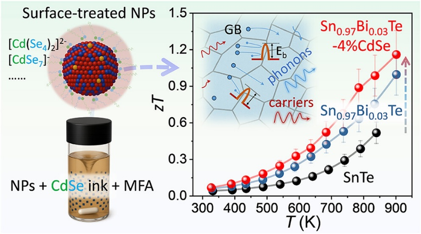 图2.硫醇-胺配合物前驱体化学与界面工程协同优化高效SnTe热电材料