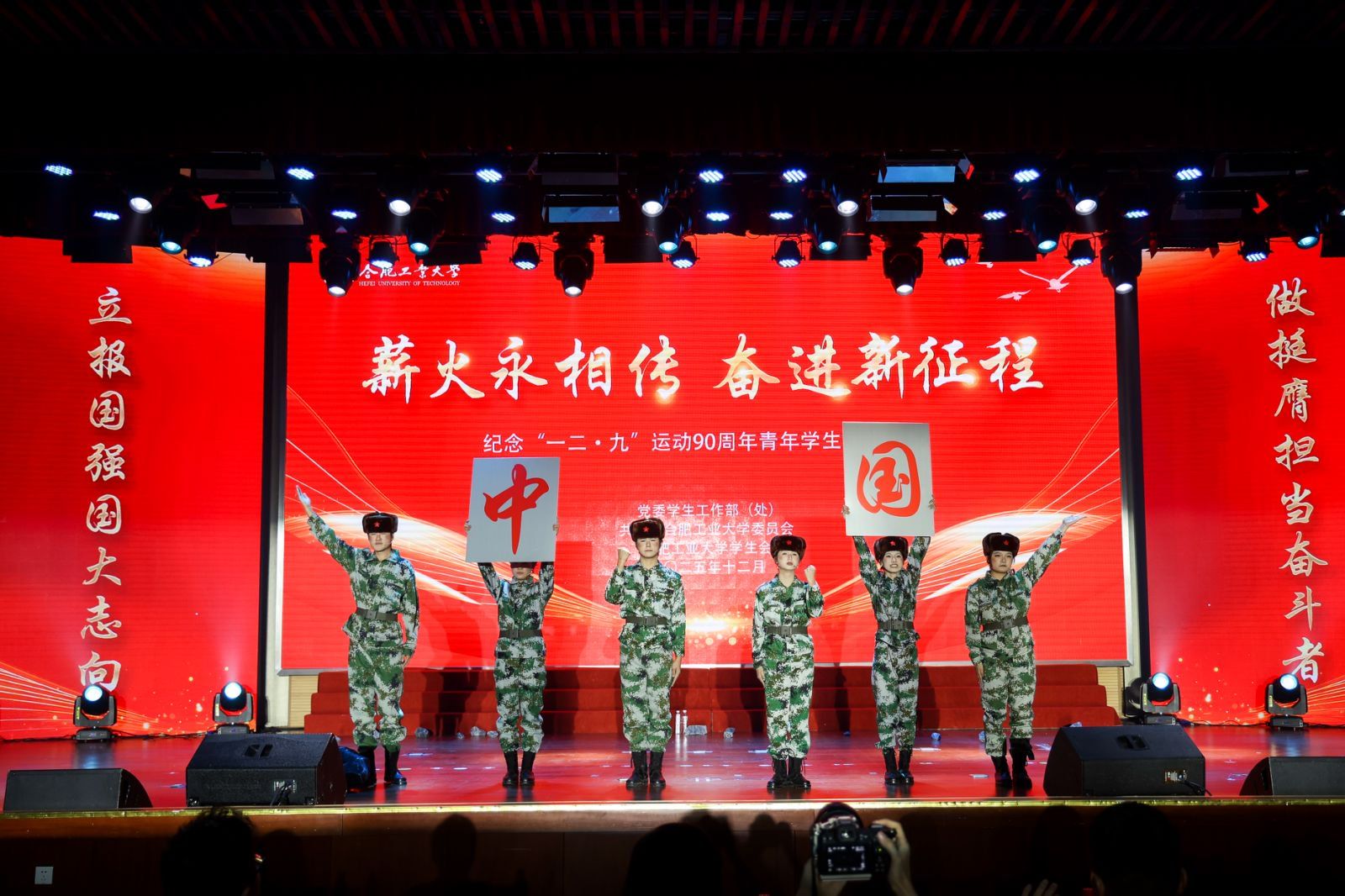 纪念“一二·九”运动90周年青年学生朗诵比赛既是一堂深刻的爱国主义教育实践课,也是一次以美育人、以文化人的美育实践。活动集思想性、教育性、艺术性于一体,旨在激励广大青年学生将爱国之情、强国之志转化为报国之行,在全面建设社会主义现代化国家、以中国式现代化全面推进中华民族伟大复兴的新征程上挺膺担当、贡献青春力量。