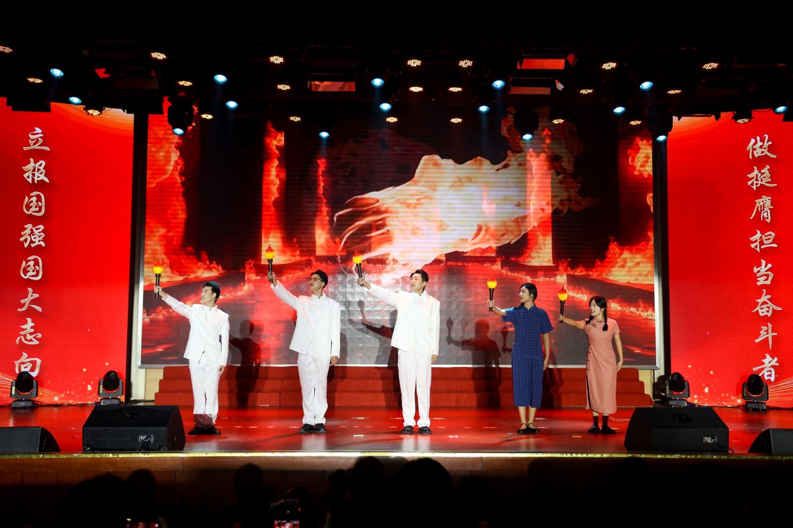 比赛以“薪火永相传,奋进新征程”为主题,组织全校20个学院的青年学生代表齐聚一堂,以传情动人的有声语言艺术为媒介,回溯峥嵘岁月,传承红色薪火。比赛现场,青年学子全情投入,以饱满真挚的情感致敬忠诚担当,于字里行间再现先烈风骨与军魂本色;以赤城铺展家国画卷,在声声诵读中传递直抵人心的红色力量;紧密结合学科特色,以专业视角诠释“工业报国”的青春壮志。活动开篇,大学生艺术团乐队奏响《我爱你中国》,激昂旋律点燃全场爱国热忱。中场环节,舞蹈《从来银杏不负秋》以灵动舞姿勾勒诗意秋韵。整场活动以声传情、以情励志,让红色基因融入青春血脉,展现了新时代青年坚定理想信念、勇担复兴使命的昂扬风貌。