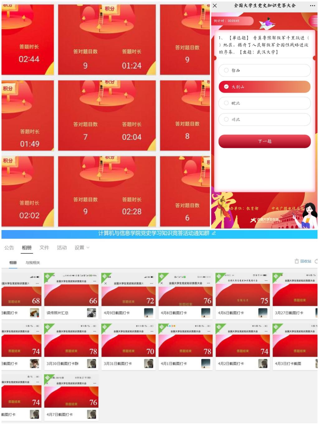3月27日至4月10日,计算机与信息学院开展了《全国大学生党史知识竞答大会》云答题活动。