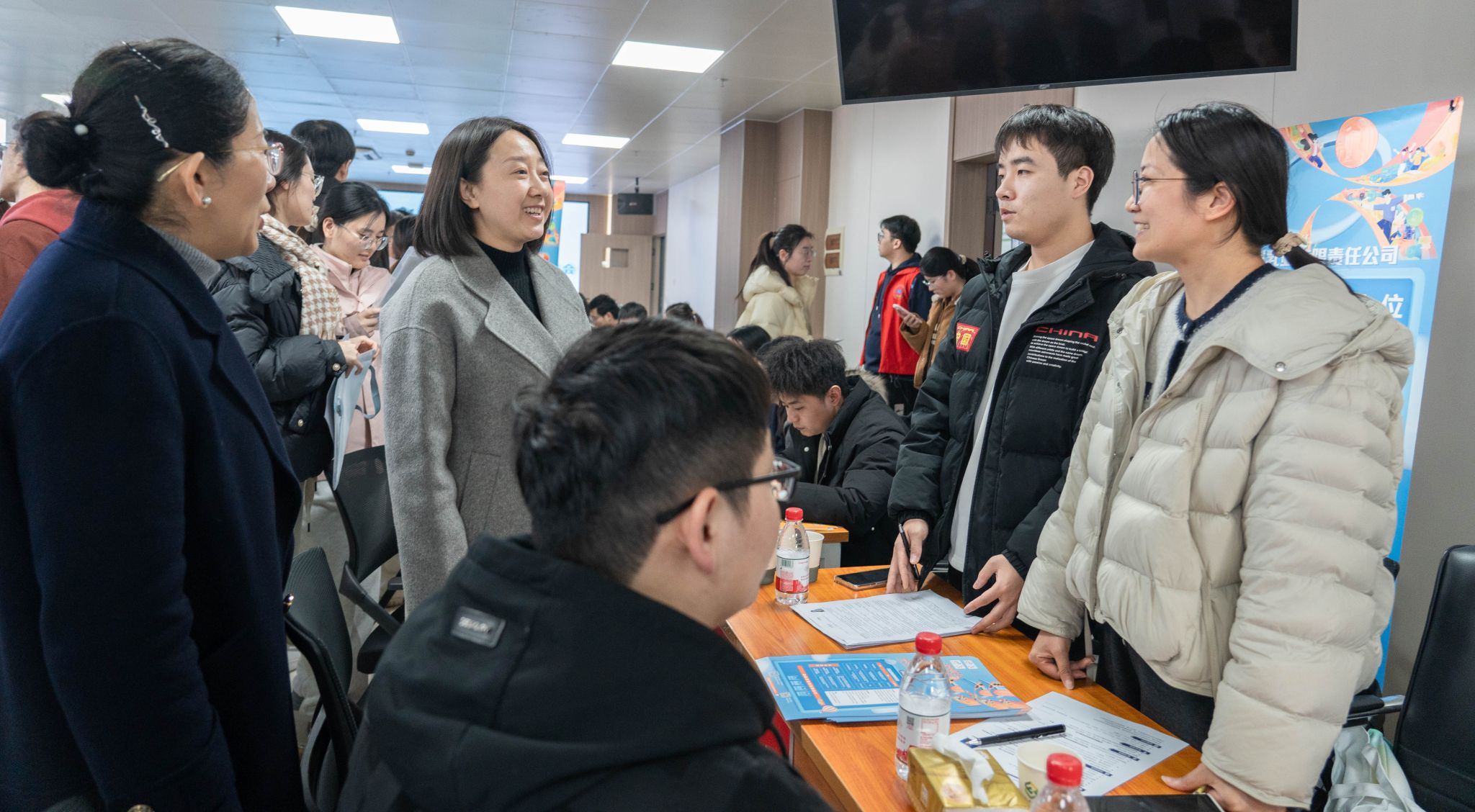 为持续推进2026届毕业生高质量充分就业,积极搭建校企对接平台,精准匹配人才供需,12月18日,食品与生物工程学院在翡翠湖校区食生楼206、306会议室举办2025年“‘职’面未来,不负青春”“精准就业”双选会。双选会现场,学院党委书记孙彩霞、副书记兼纪委书记李艳、毕业班辅导员老师,与参会企业负责人、毕业生展开深度交流。老师们向企业负责人详细介绍学院学科特色、人才培养模式及毕业生整体情况,了解用人单位的岗位要求...