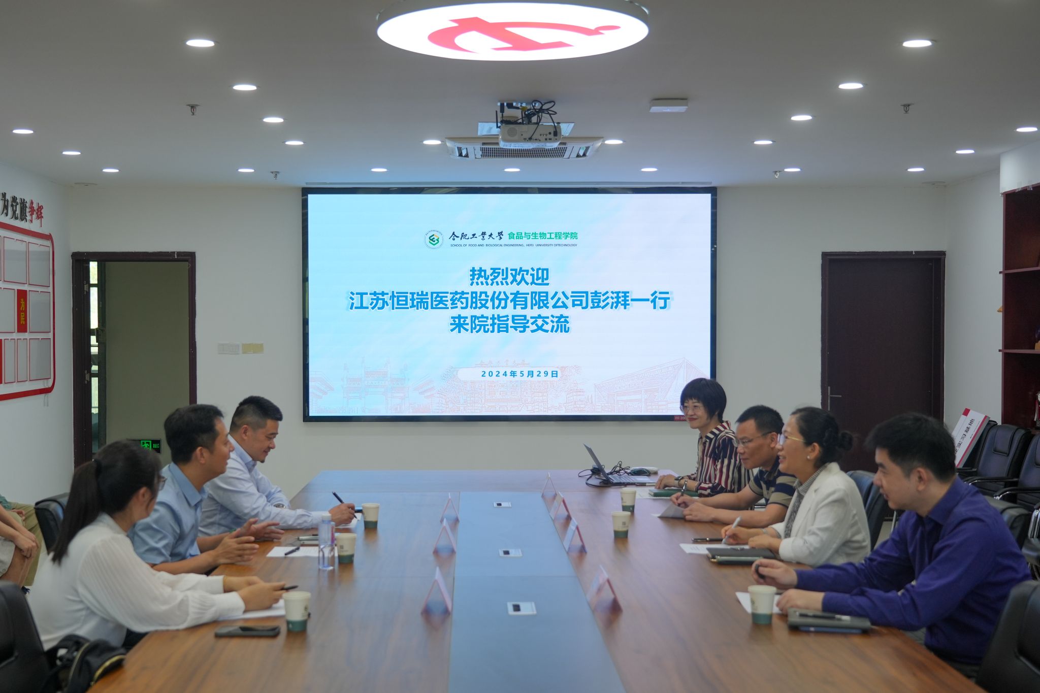 5月29日下午,食品与生物工程学院2000级校友、江苏恒瑞医药股份有限公司营销体系事业部副总经理彭湃一行来学院考察交流,并在学院办公大楼205室与学院相关领导、老师开展座谈交流活动。首先,学院党委副书记兼纪委书记李艳对彭湃一行表示热烈欢迎,并对企业长期以来对学院毕业生的厚爱表示感谢。她简要介绍了我院教师队伍、专业设置、学科发展、人才培养等基本情况。江苏恒瑞医药股份有限公司营销体系HRBP任诗艳从企业发展历程...