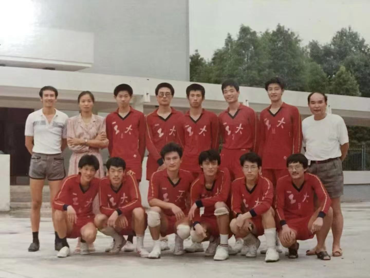 图片是1990年在华东工程学院参加机械部高校排球联赛时拍摄的纪念照,后排右五是陆长利董事长。