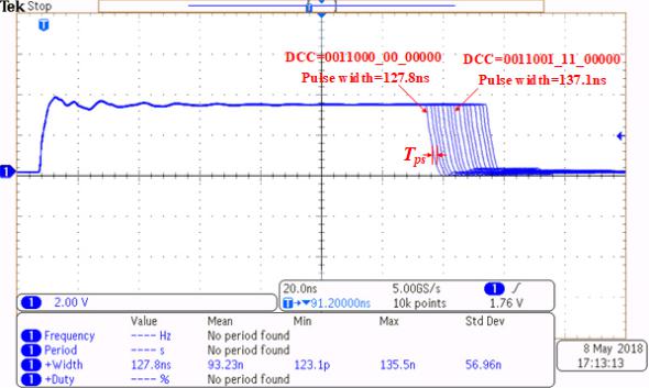 该团队针对高性能数字脉宽调制器展开一系列研究,前期工作包括首次提出DPWM关键路径中的逻辑和互连延时所引起的占空比增量现象,并对该占空比增量进行补偿,最终实现11位、时间分辨率53ps的数字脉宽调制器,该成果发表在电子工程类国际著名期刊IEEE Trans. Power Electron.(2018, 33(12):10794-10802)。在此基础上,该团队进一步对DPWM关键路径的时序进行优化设计,并提出新型相移同步电路和快速进位链构成数字脉宽调制器,最终实现14位、时间分辨率41.3ps的数字脉宽调制器。上述工作为高性能数字开关电源的实现提供了有力技术支持。