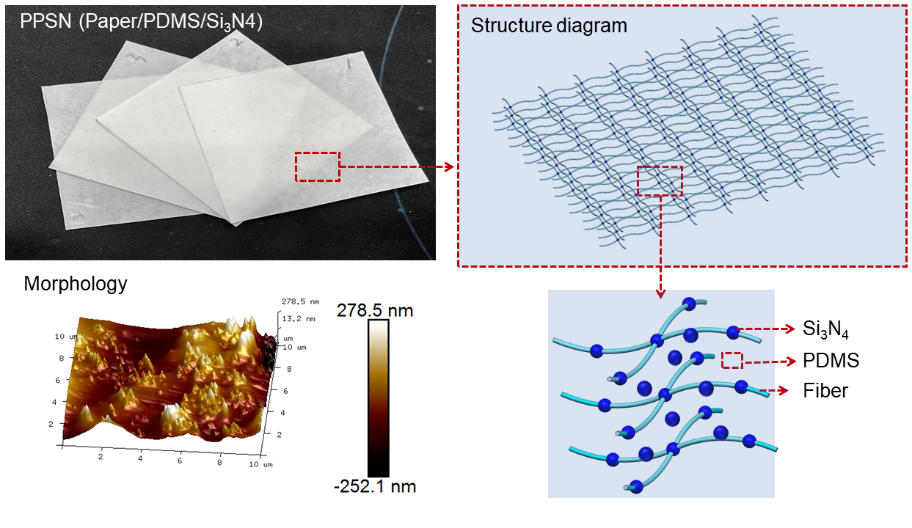 团队仿照贝壳层结构提出了新型的仿生柔性基底。柔性基底在柔性电子设备中起着至关重要的作用,不仅提供支撑和灵活性,还直接影响到传感器的稳定性。传统的柔性基底在大规模生产和成本控制方面仍面临挑战。为了解决这一问题,课题组受自然界珍珠壳“砖-砂浆”分层结构的启发,提出了一种新型的PPSN柔性基底。该基底采用纸/PDMS/Si₃N₄纳米颗粒复合材料,并通过拓补互锁技术,实现了优异的热稳定性和机械稳定性。研究表明,PPSN基底在经过1万次弯曲循环后依旧保持形态完整,具有良好的耐热性,疏水角超过了125°。此外,该基底能够有效消散热应力,并在300°C下保持低于较低的热膨胀系数,满足高性能柔性传感器的要求。该技术的突破将为柔性电子器件的低成本、大规模生产提供新的解决方案。该项成果以“Nacre-inspired hierarchical bionic substrate for enhanced thermal and mechanical stability in flexible applications”为题发表在《Sensors and Actuators A: Physical》。