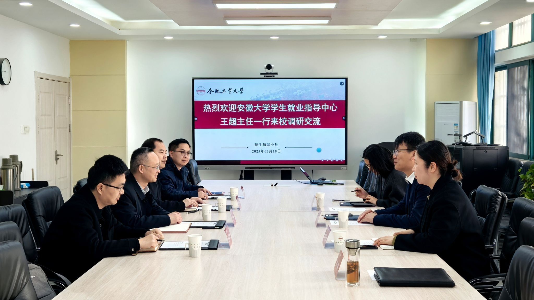 3月18日上午,安徽大学学生就业指导中心主任王超一行来校调研就业工作。学校招生与就业处处长李洪涛,相关科室负责人参加座谈会。
