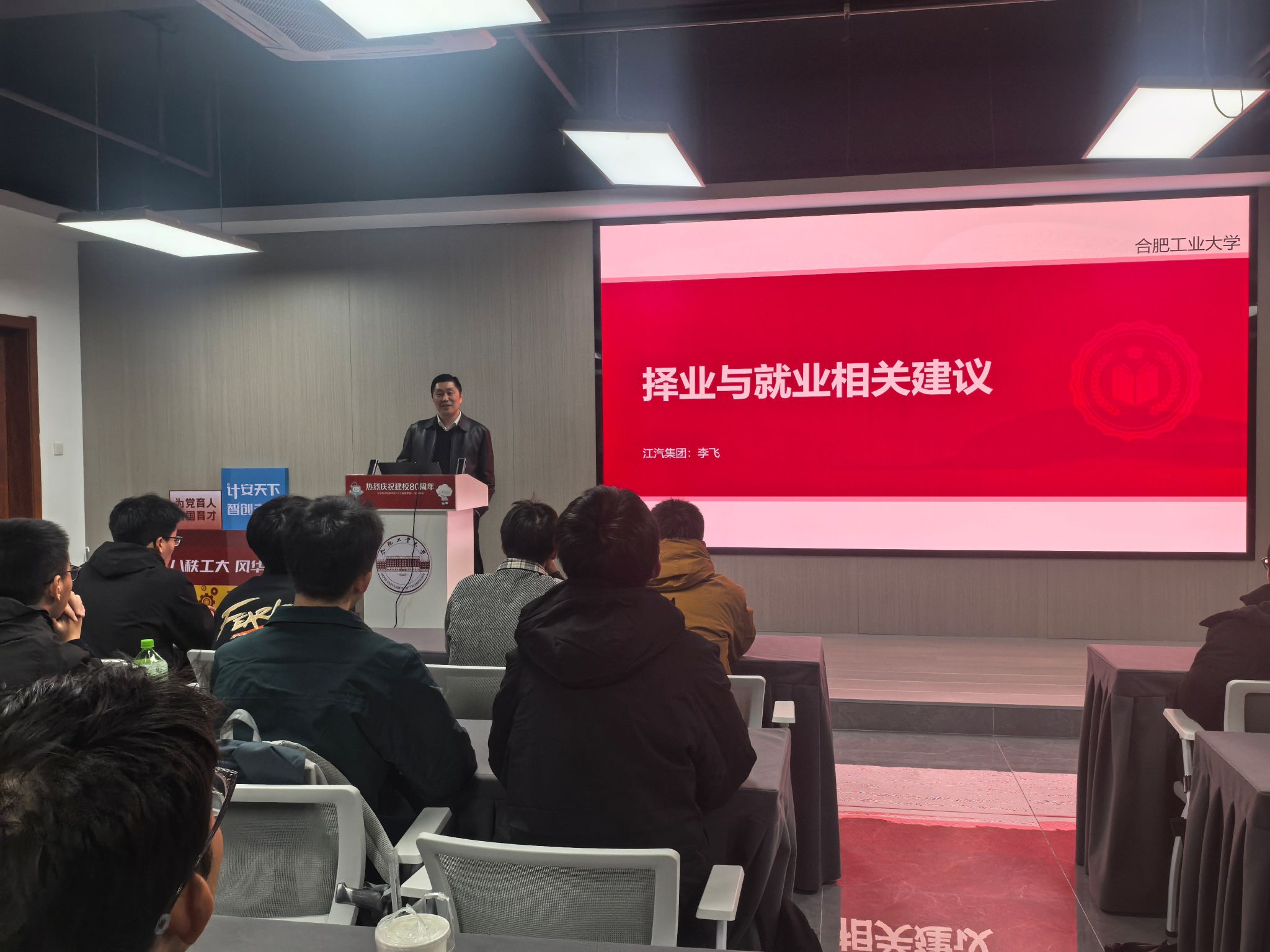 12月12日晚,我校“行业大咖进校园”职业规划系列活动第四期在翡翠湖校区科教楼B座501报告厅成功举办。本期活动特邀江汽集团组织人事部门负责人、全国大学生职业规划大赛省赛及国赛评委李飞先生担任主讲嘉宾,为同学们作题为“择业与就业——从校园到职场的策略与成长”专题讲座。