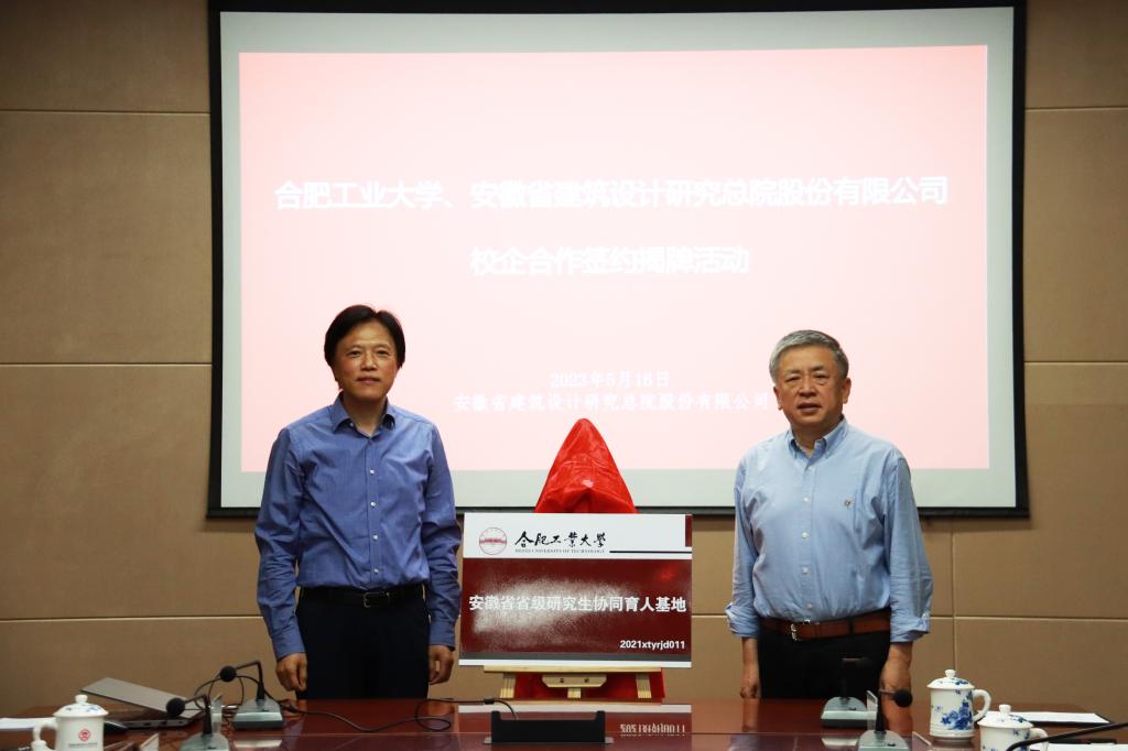 5月16日下午,星空游戏官网app与安徽省建筑设计研究总院股份有限公司举行校企合作签约揭牌仪式。校党委常委、副校长吴玉程,校党委副书记陈刚,安徽省建筑设计研究总院股份有限公司党委书记、董事长、建筑学81级校友高松,安徽省建筑设计研究总院党委副书记、总经理韦法华等出席会议。